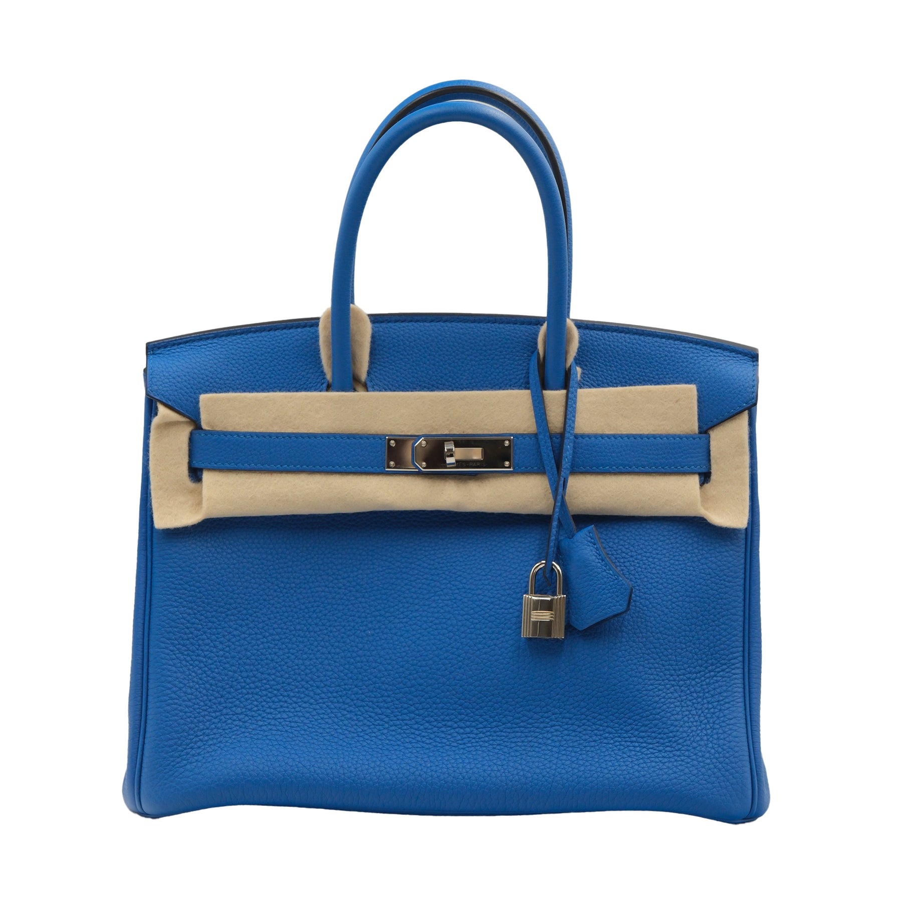 This Hermès Birkin 30 in Bleu Royal Togo leather with Palladium hardware embodies timeless sophistication with a bold contemporary edge. The rich, regal blue tone of Bleu Royal pairs beautifully with the supple grain of Togo leather, offering both durability and refined texture.