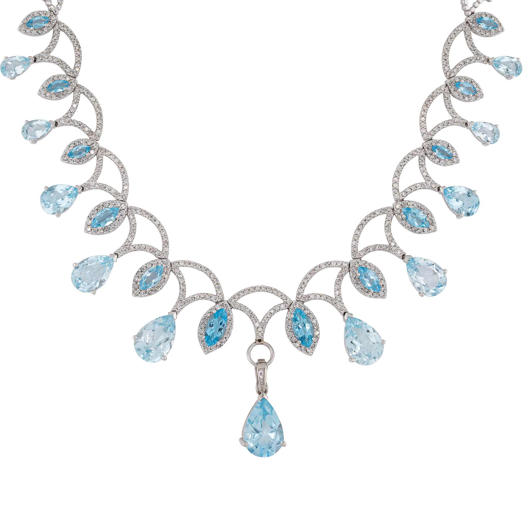 ECJ Collection 14K White Gold Blue Topaz Necklace