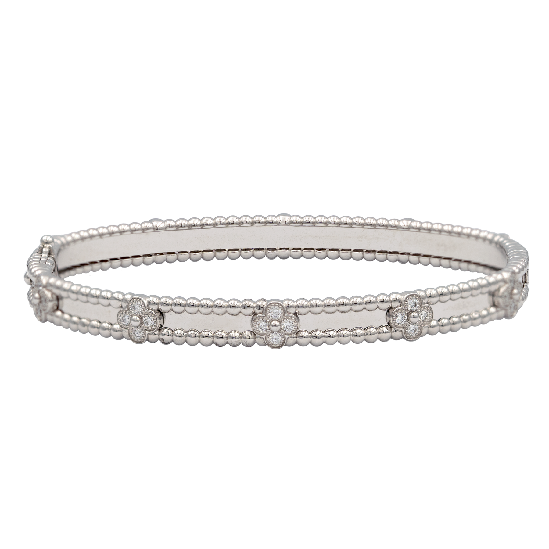 The cool tone of white gold enhances the brilliance of the diamonds, creating a clean and sophisticated aesthetic suitable for everyday wear or elegant layering. The bracelet’s graceful proportions and meticulous craftsmanship reflect the Maison’s commitment to precision, balance, and timeless design.